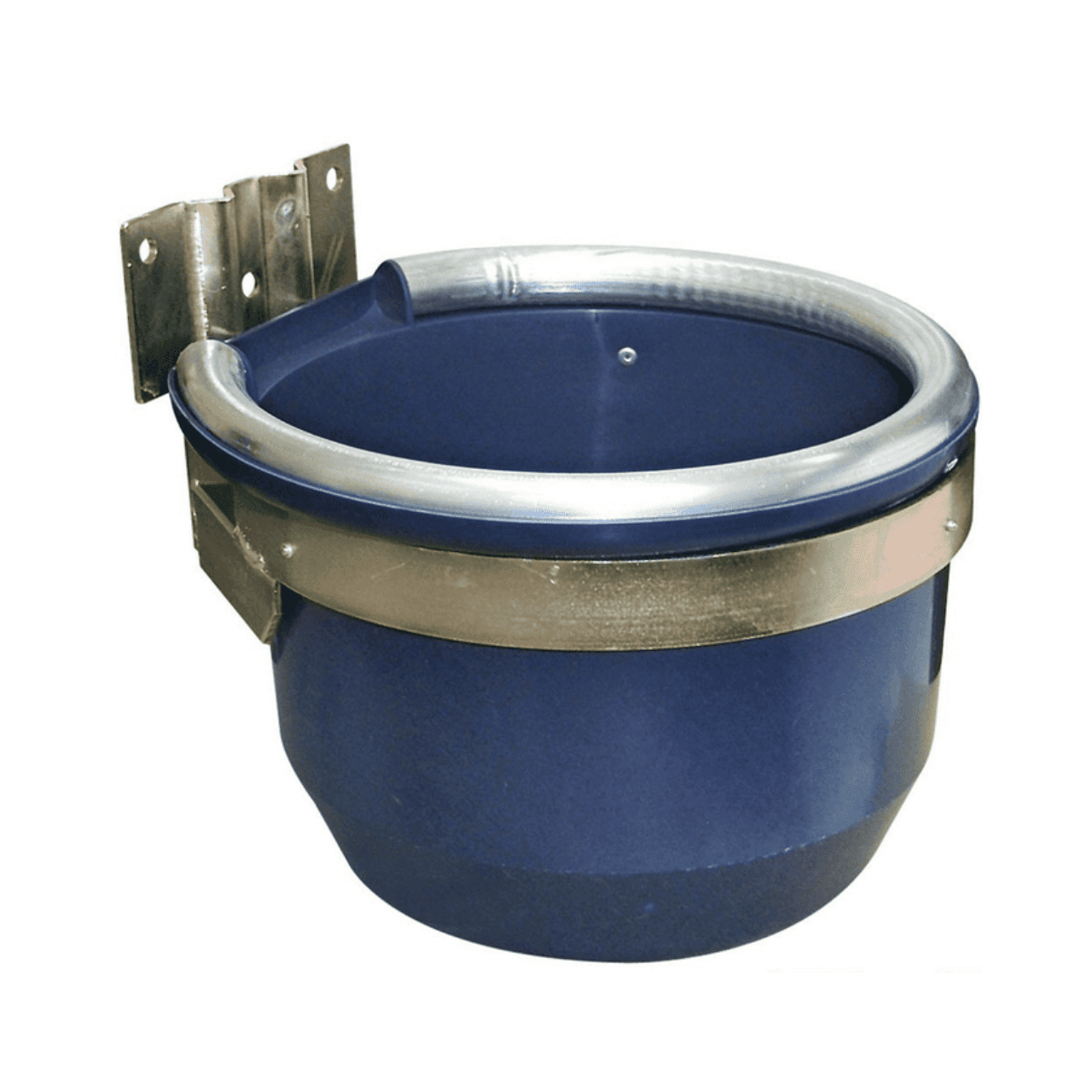 Mangiatoia in polipropilene antispreco tonda con bordo in metallo zincato con capacità: 17 litri.