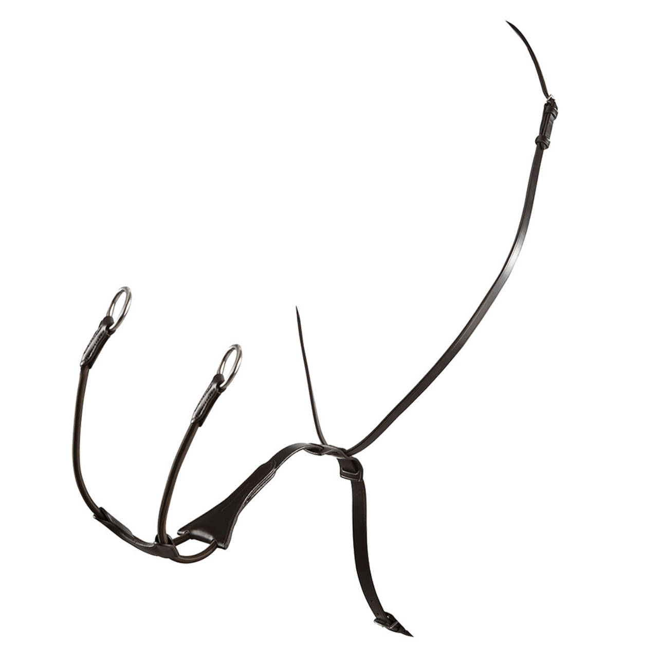 Martingala a collier modello Melanie in pelle conciata dotata di forchetta tubolare elastica realizzata affinchè limiti i movimenti della testa del cavallo verso l'alto. Agisce direttamente sulla bocca per mezzo delle redini passanti per l'anello posto al termine della forchetta.