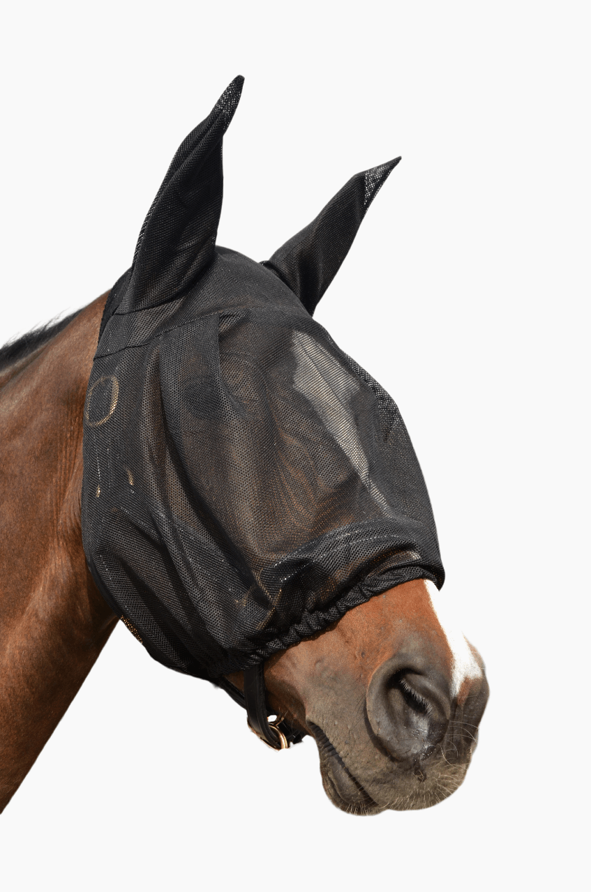 Maschera in rete morbida studiata per proteggere il cavallo dagli insetti sia durante il lavoro sia durante il riposo.