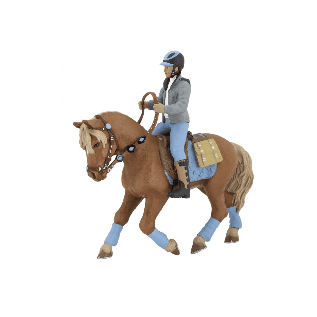 Fedele riproduzione di un cavallo sellato americano realizzato in PVC e dipinto a mano con incredibile realismo. L'anatomia del cavallo e del cavaliere è rispettata in ogni dettaglio. Il cavaliere non è incluso.