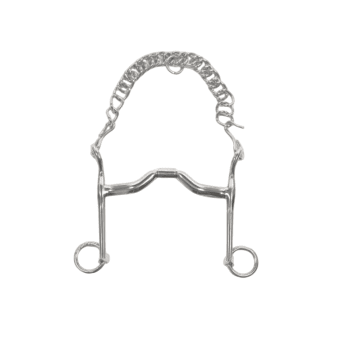Morso Metalab ad aste lunghe realizzato in acciaio inox con cannone curvo che consente la libertà della lingua del cavallo. Completo di barbozzale.
