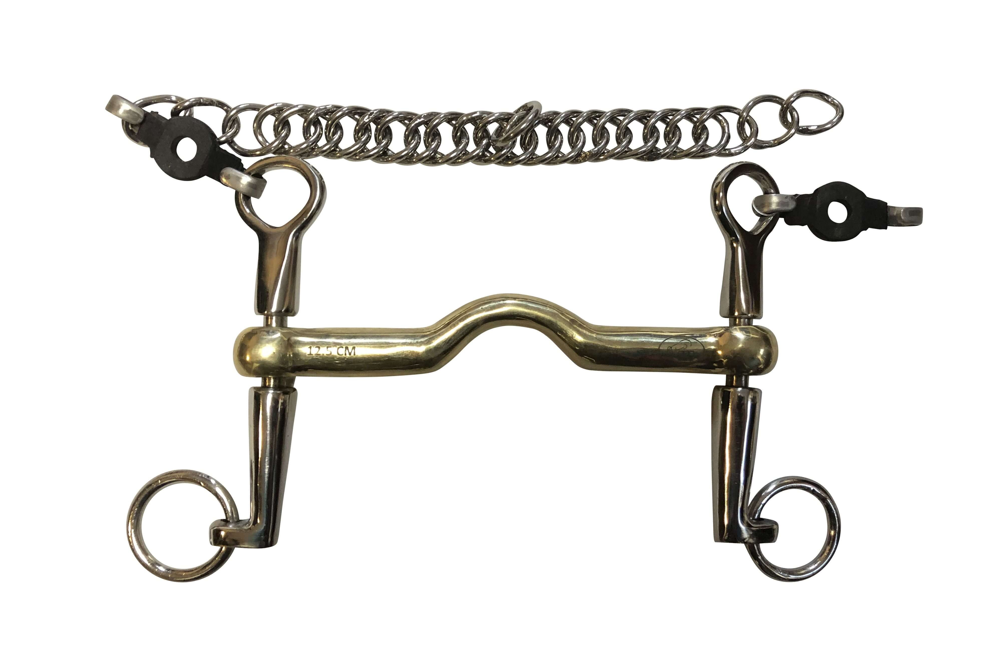 Morso da briglia a pompa leva corta (45 mm) e fusto sottile da 14 mm in German Silver (65% rame, 23% zinco, 12% nichel).