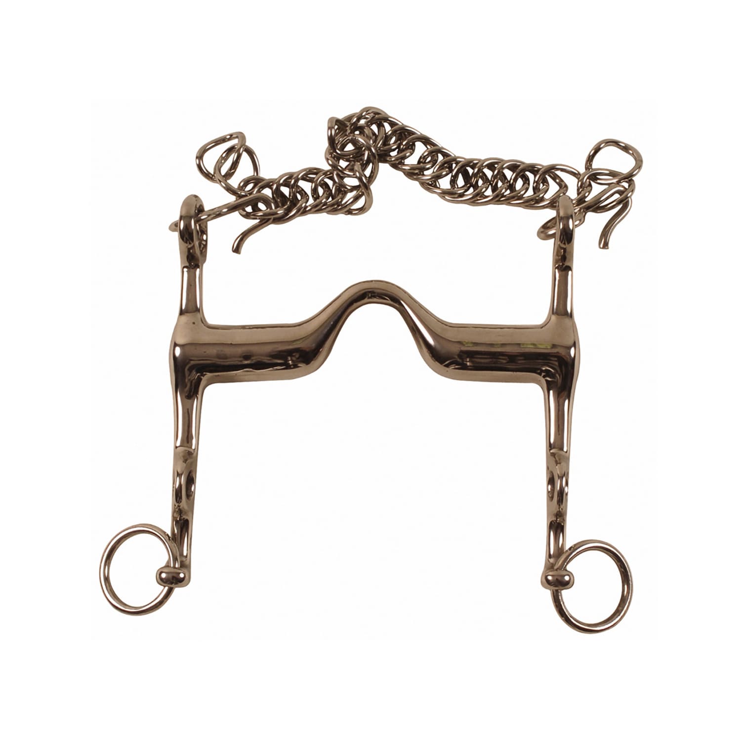 Morso da dressage cavo in acciaio inox intero spesso 23 mm. Il morso ha due aste fisse ed è dotato di barbozzale.