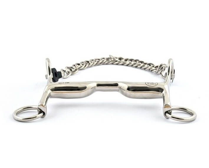 Effetto: Morso da briglia chiamato "Lhotte", fisso e il più classico. Il suo fusto largo e ricurvo permette alla lingua di lavorare sotto la punta. L'azione del bridle bit dipenderà dalla sua canna ma anche e soprattutto dalla lunghezza dei rami.