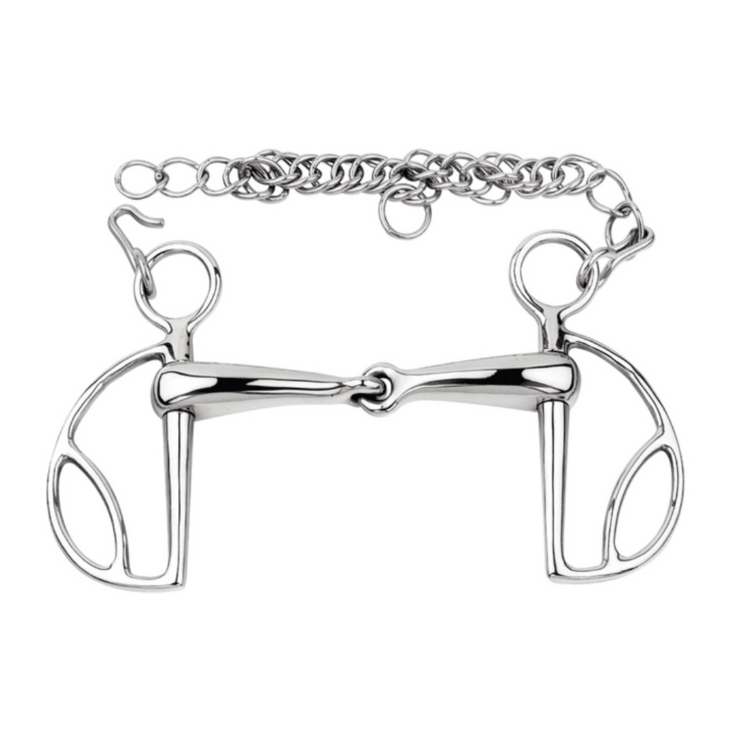 Morso spagnolo snodato vuoto in acciaio inox con barbozzale in catena.