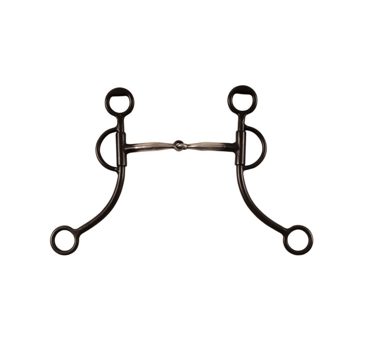 Morso western ad aste lunghe in ferro nero snodato con imboccatura inox e inserti in rame.