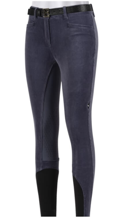 Pantalone Equiline da donna in velluto modello Edinaek realizzato in tessuto tecnico elasticizzato sulla caviglia e grip all'interno del ginocchio.