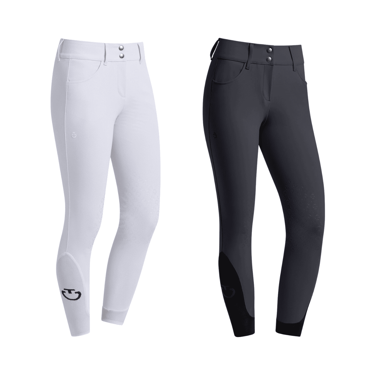 Pantaloni per equitazione da donna a vita alta di Cavalleria Toscana realizzati in tessuto tecnico bi-stretch per la massima traspirabilità e libertà di movimento: aderiscono perfettamente al corpo, senza alcuna costrizione.