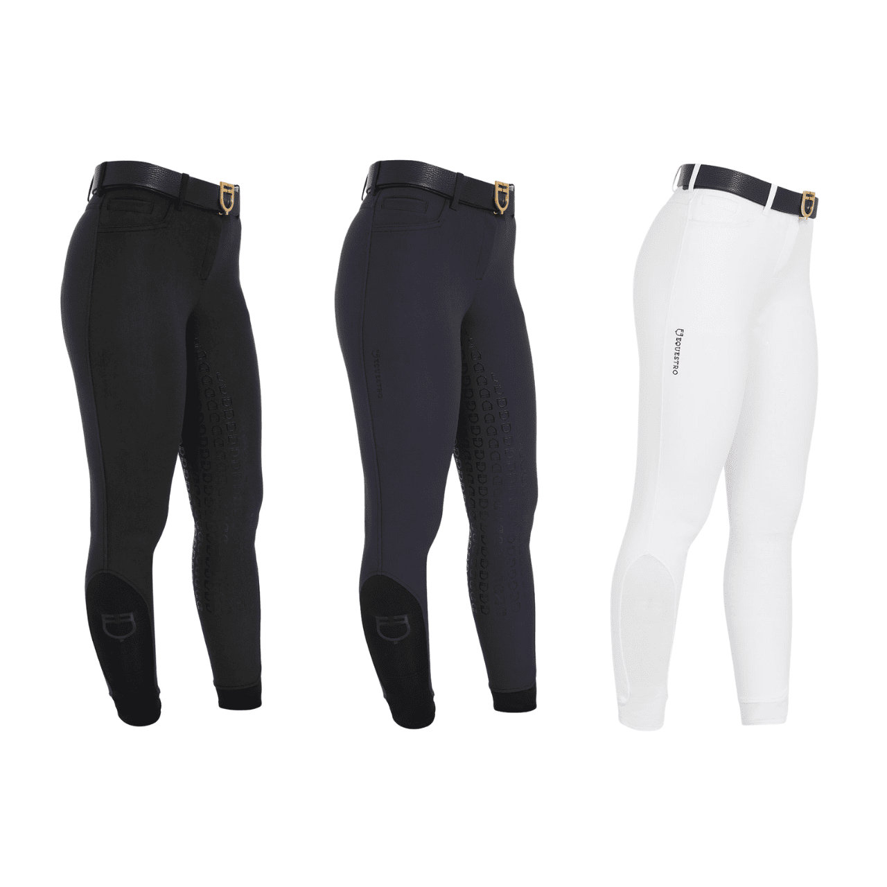 Sulla parte posteriore e interna del ginocchio sono caratterizzati da un pratico full grip in silicone con logo Equestro, che garantisce un'ottima stabilità e aderenza alla sella.