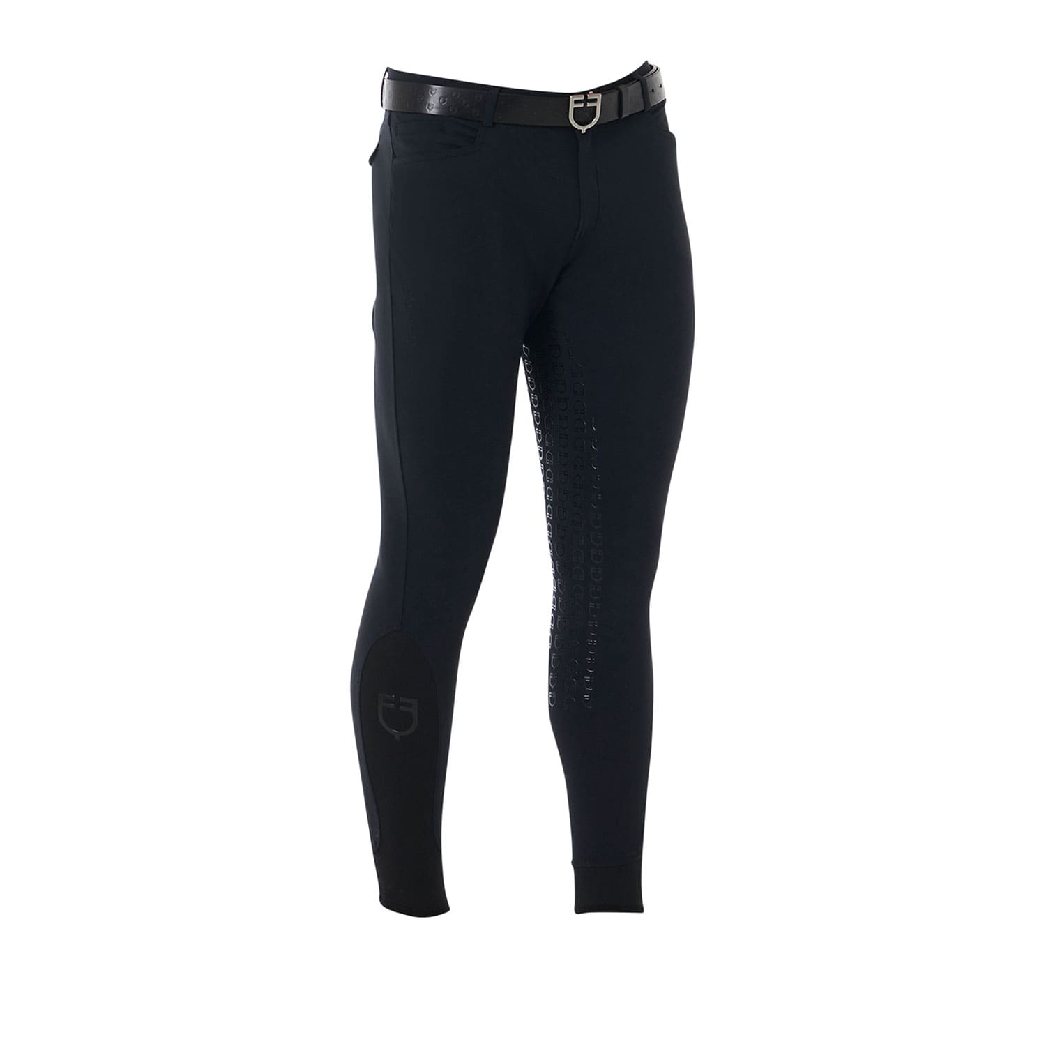 Pantaloni equitazione estivi da uomo di Equestro modello Aria con full grip disponibili in colore blu e nero.