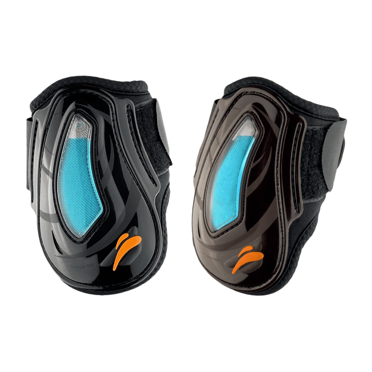 Paranocche posteriori Equick eAirshock con chiusura in velcro, guscio ventilato e parte interna che combina il mesh 3D e il neoprene per un massimo comfort. Ideali per cavalli giovani.