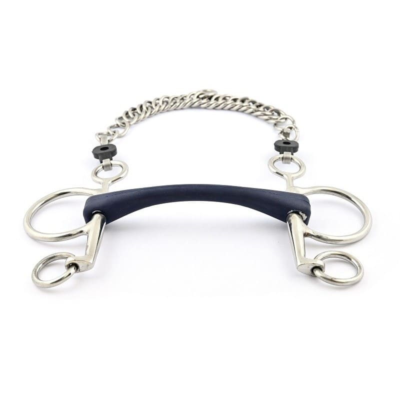 Effetto: questa imboccatura offre un effetto leva più o meno forte a seconda della lunghezza dei rami, della regolazione della catena e del suo montaggio. Provoca un cedimento del collo e una pressione sulle mandibole. I morsi in gomma sono i più morbidi della gamma Jump'In e garantiscono molto comfort ai cavalli, anche ai più sensibili.