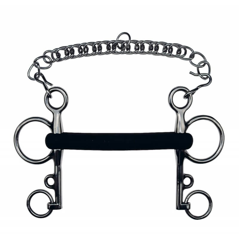 Pelham in acciaio inossidabile rivestito in gomma con cannone rigido. Leva lunga.
