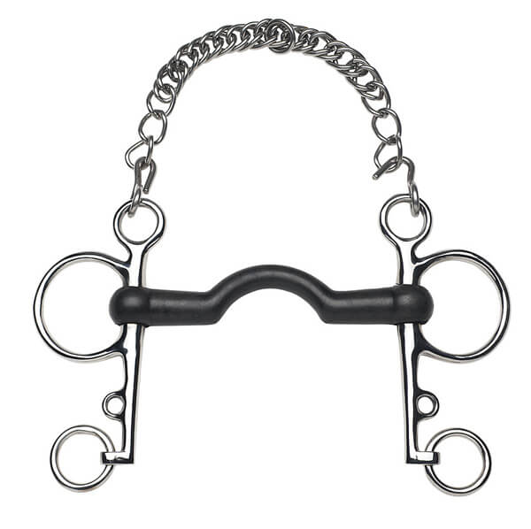 Pelham intero in gomma con collo d'oca a leve lunghe e spessore 21 mm.