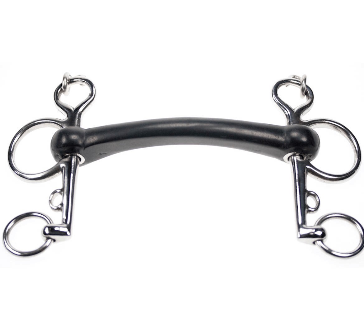 Pelham in vulcanite intero rigido da 10 cm con leve corte da 5 cm.