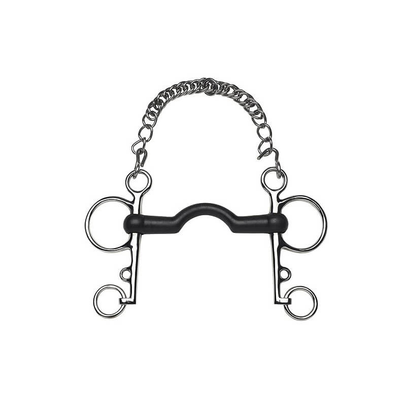 Pelham intero in acciaio inox con bocchino sottile a collo d'oca rivestito in gomma.