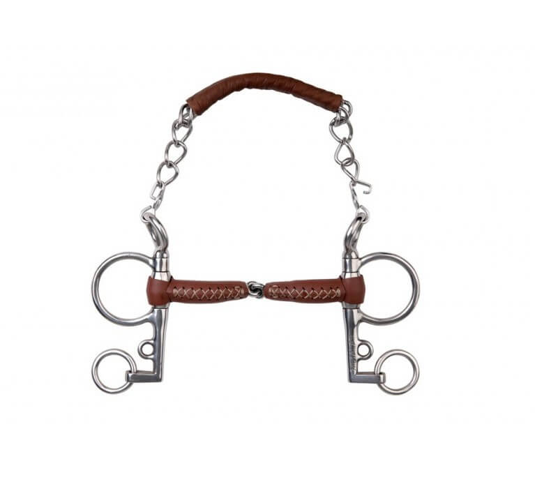 Pelham in acciaio inox, rivestito in pelle, a snodo singolo, leva lunga.