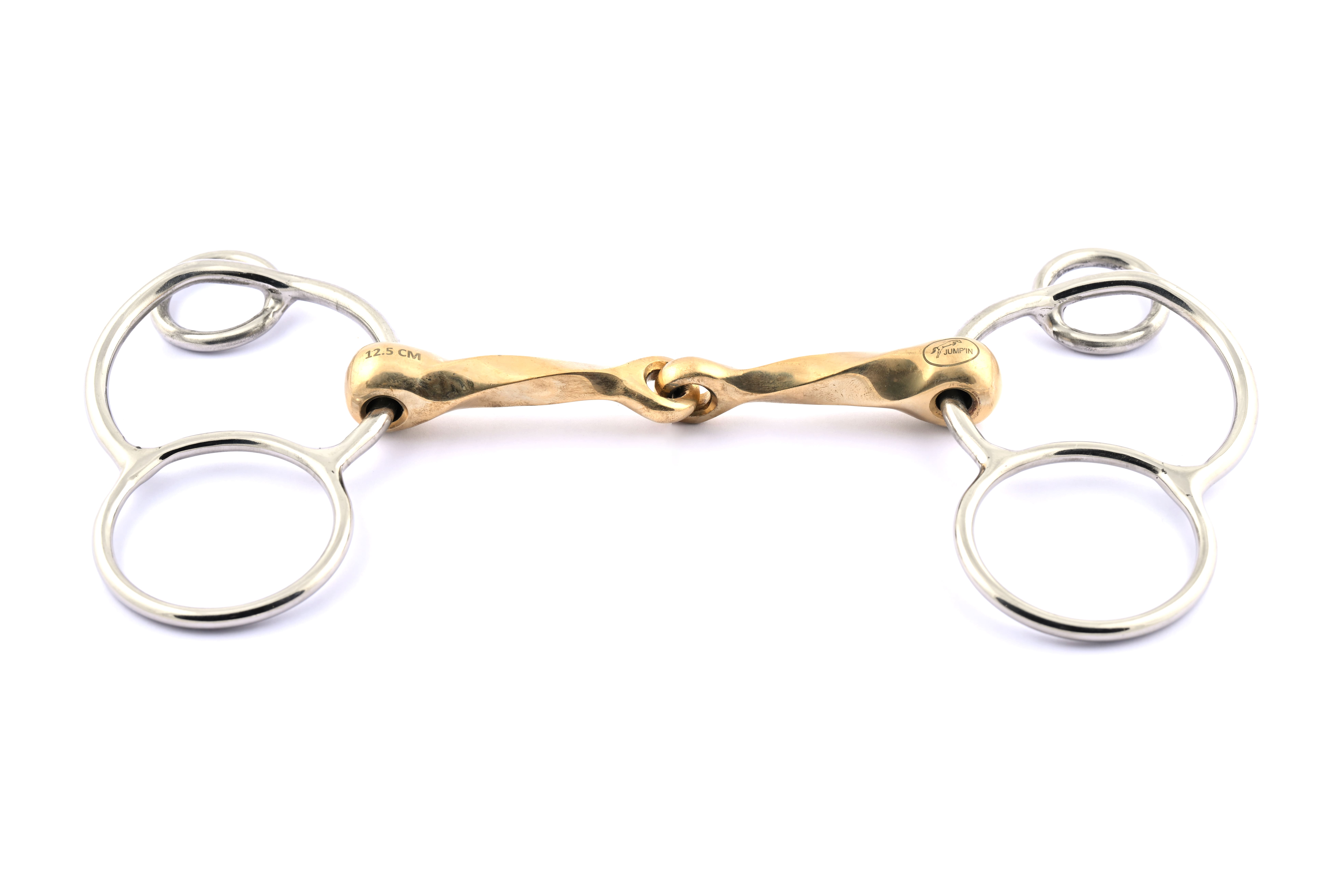 Istruzioni per l'uso: questo morso può essere utilizzato con redini fissate saldamente all'anello inferiore, con anelli o con due paia di redini. Il corpo ritorto consentirà al cavaliere di avere un po' più di movimento e quindi fermezza nella comunicazione con il cavallo.