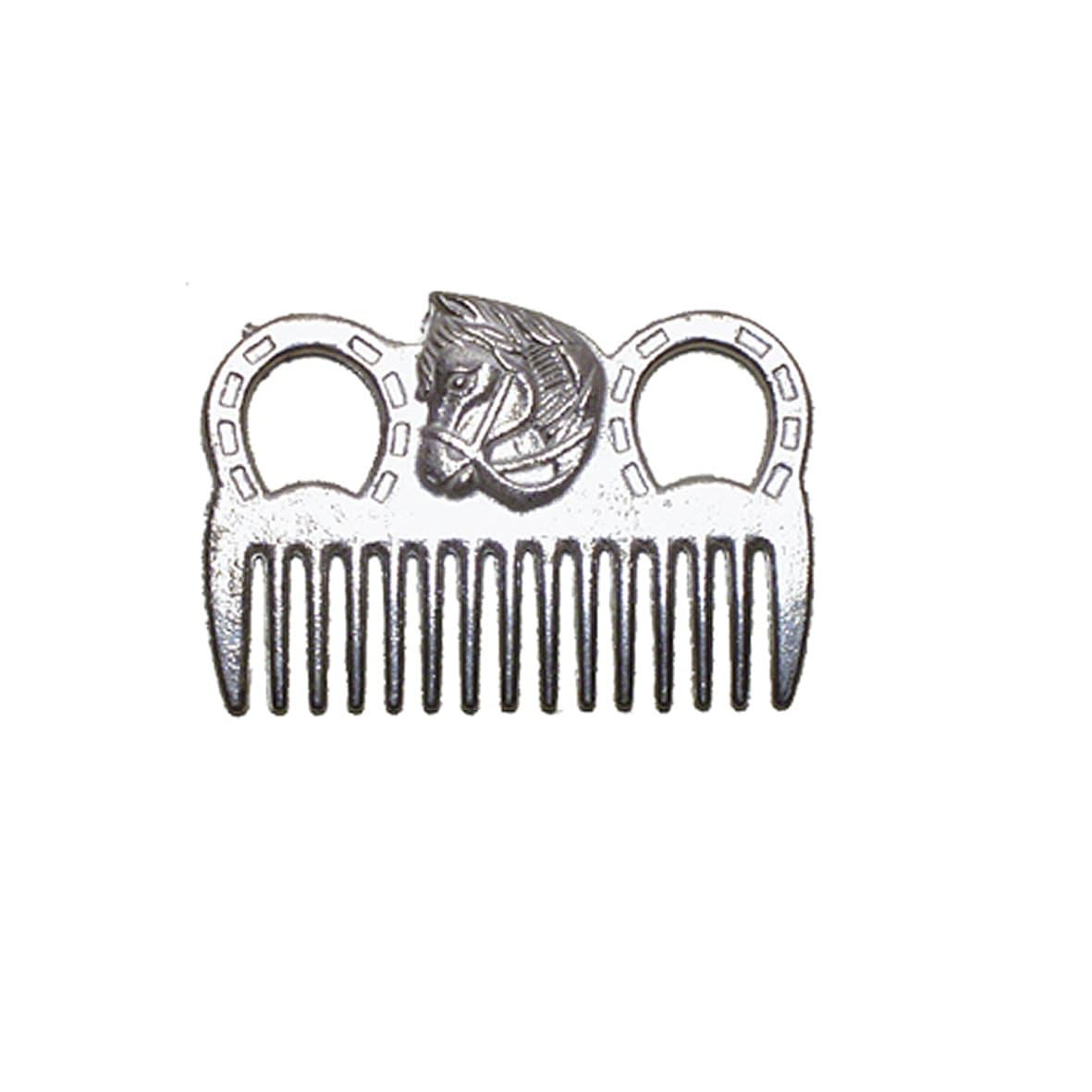 Pettine in alluminio con testa di cavallo.