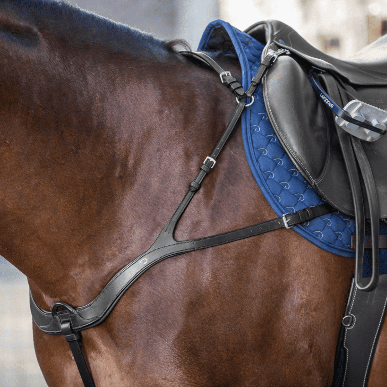 Pettorale anatomico Dyon con 4 punti di attacco fissi e attacco al sottopancia rimovibile.
