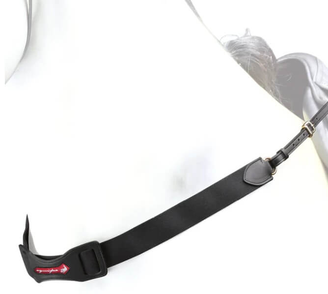 Pettorale da salto dritto realizzato in cuoio naturale con parti in elastico, dotato di passante per martingala.