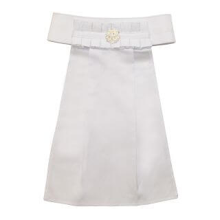 Plastron in cotone elasticizzato con rouche in gros e bottone gioiello, chiusura in velcro e scritta Tattini in silicone.