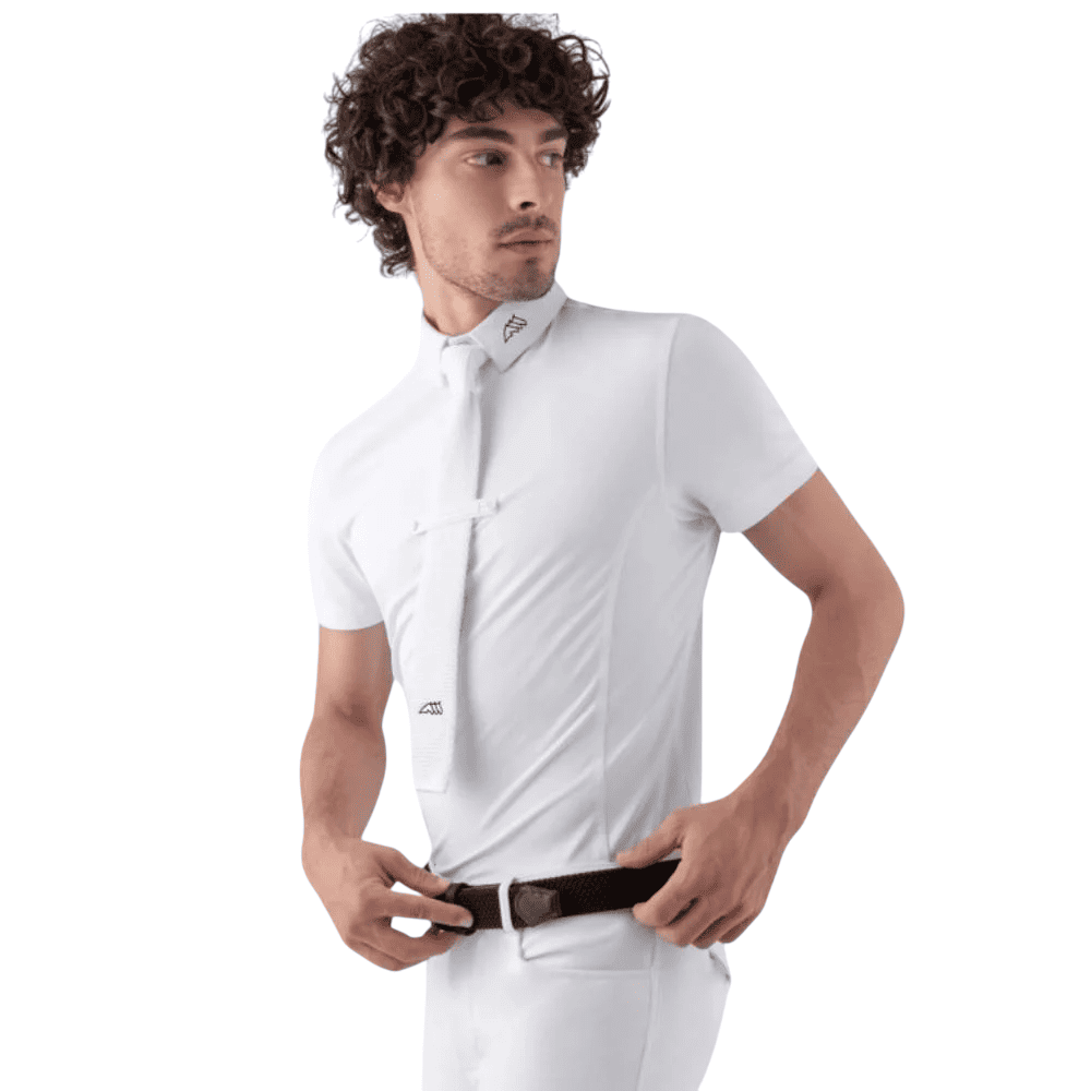 Un elemento distintivo è il fermacravatta rimovibile, che permette di adattare facilmente il look alle diverse esigenze di gara o di stile personale. Questa caratteristica unica offre la flessibilità necessaria per passare con disinvoltura tra diverse tipologie di competizioni equestri.
