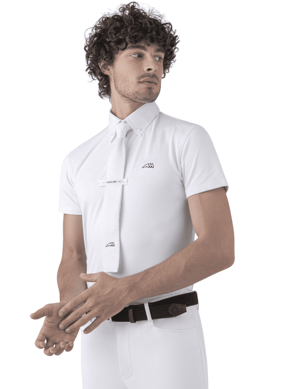 Classica polo da gara a maniche corte da uomo di Equiline, realizzata in piquet tecnico e con colletto in popeline bianco.