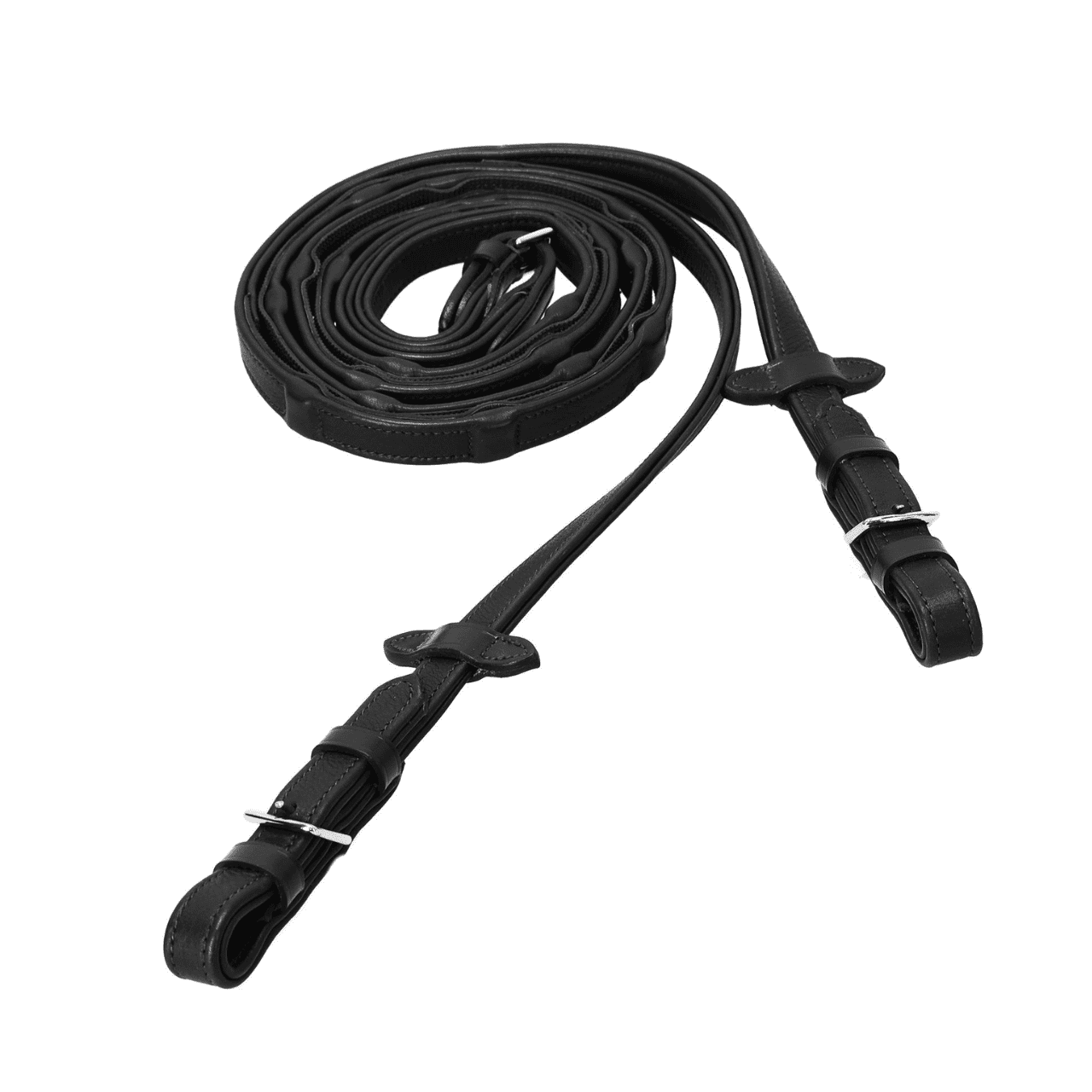 Redini Durasoft Grip di Schockemohle realizzate per il 60% in pelle, per il 20% in nylon e per il restante 20% in gomma.