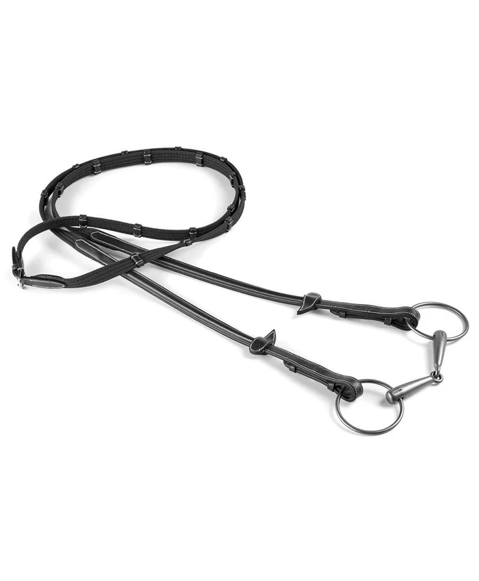 Redini Equipe realizzate in cuoio naturale e cotone, dotate di tacche antiscivolo per una presa più sicura e controllata. Larghezza 5/8".