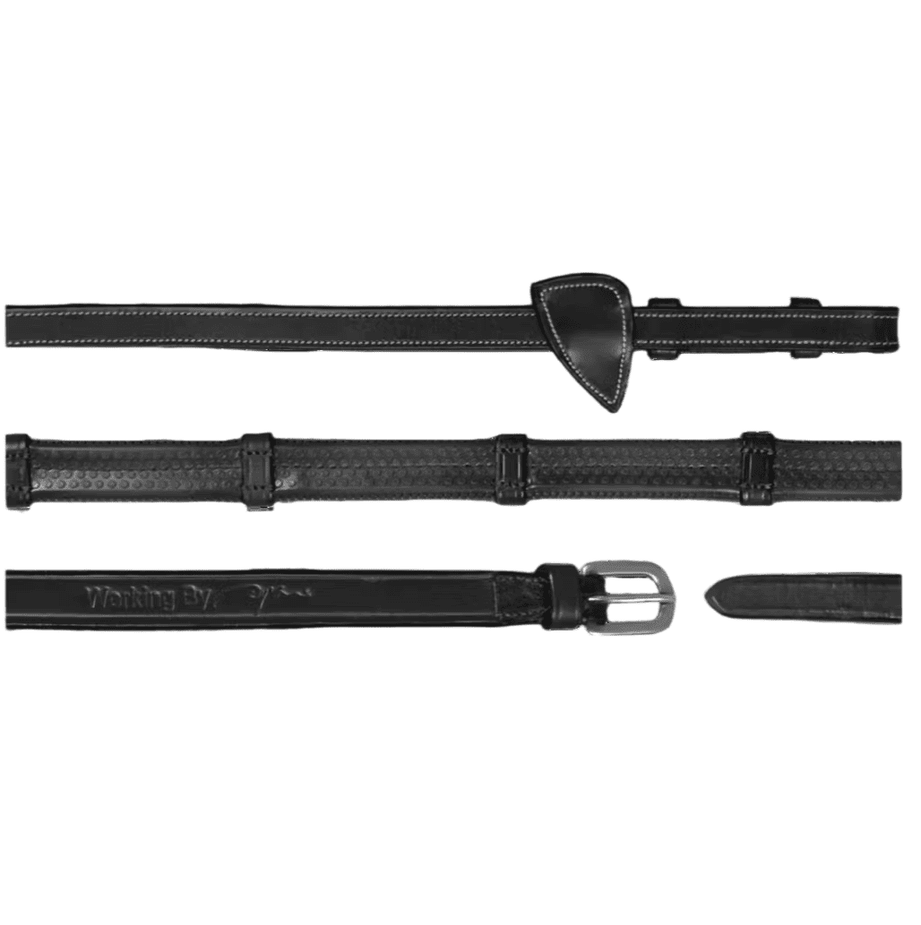 I 7 fermi in pelle aiutano a mantenere la lunghezza delle redini uniforme, impedendo che scivolino durante la cavalcata. Inoltre, i fermi per martingala Dyon garantiscono che la martingala rimanga in posizione senza comprometterne il movimento.