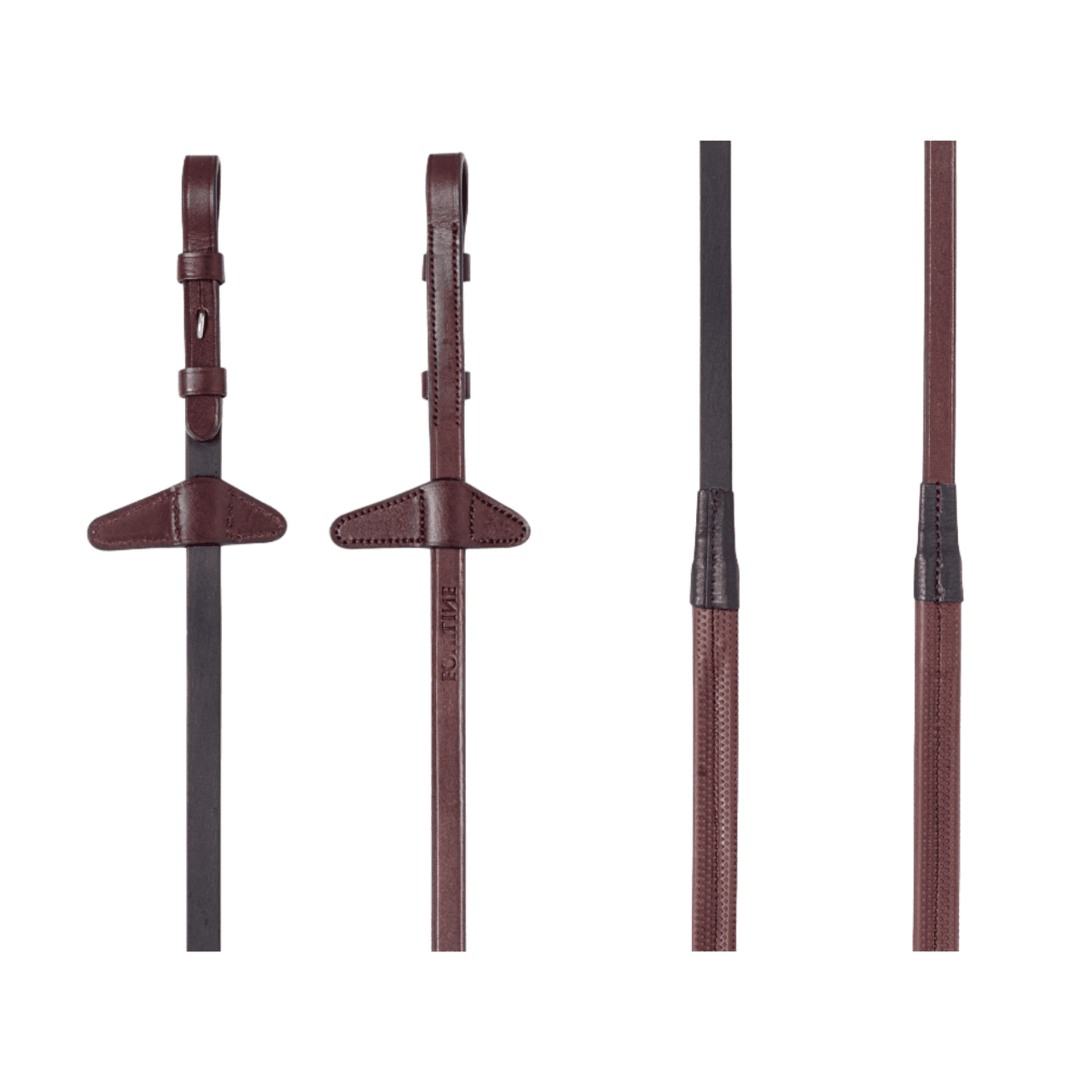 Redini Equiline in pelle con impugnatura in gomma inserita in nylon con ferma martingala dal nuovo design e chiusura con gancio e perno.