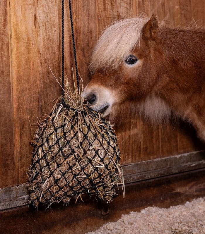 La maglia fine raziona il fieno e allo stesso tempo favorisce un’assunzione più lenta del mangime (slow feed).