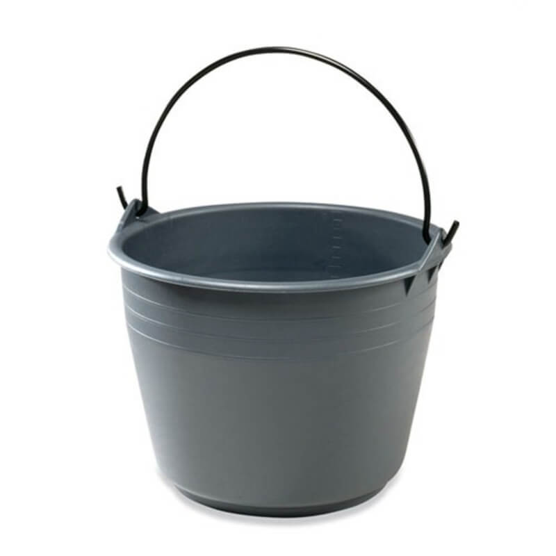 Secchio in plastica rinforzata da 18 litri disponibile nel colore grigio.