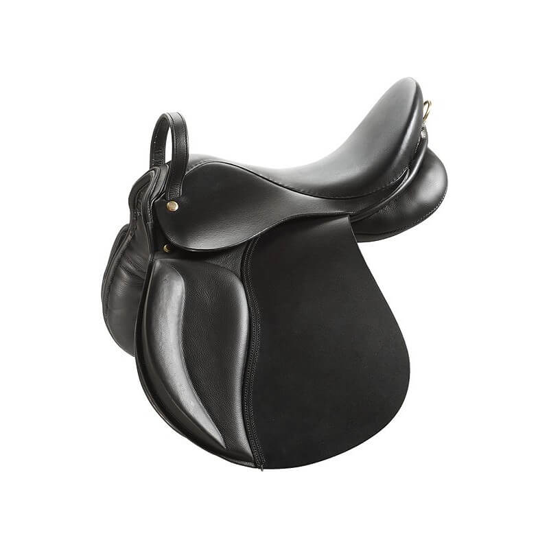 Questa sella fa sentire il cavaliere al sicuro grazie alla sua maniglia di sostegno, e anche i rulli per le ginocchia integrati nei lembi e i blocchi delle cosce del triangolo posteriore aiutano a stabilizzare le gambe.