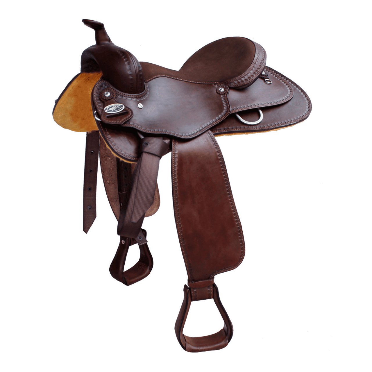 Sella western close contact di Brad Ren's con gonna a stretto contatto con seduta imbottita in pelle scamosciata. Cinghie in nylon.
