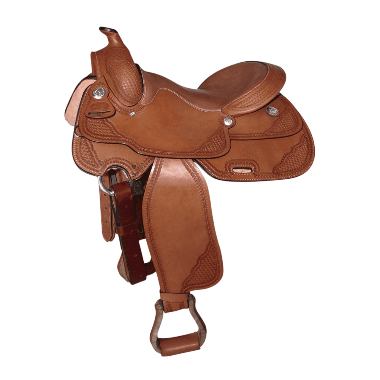 Sella western da reining in cuoio di ottima qualità disponibile in taglia 16 nel colore rossiccio.