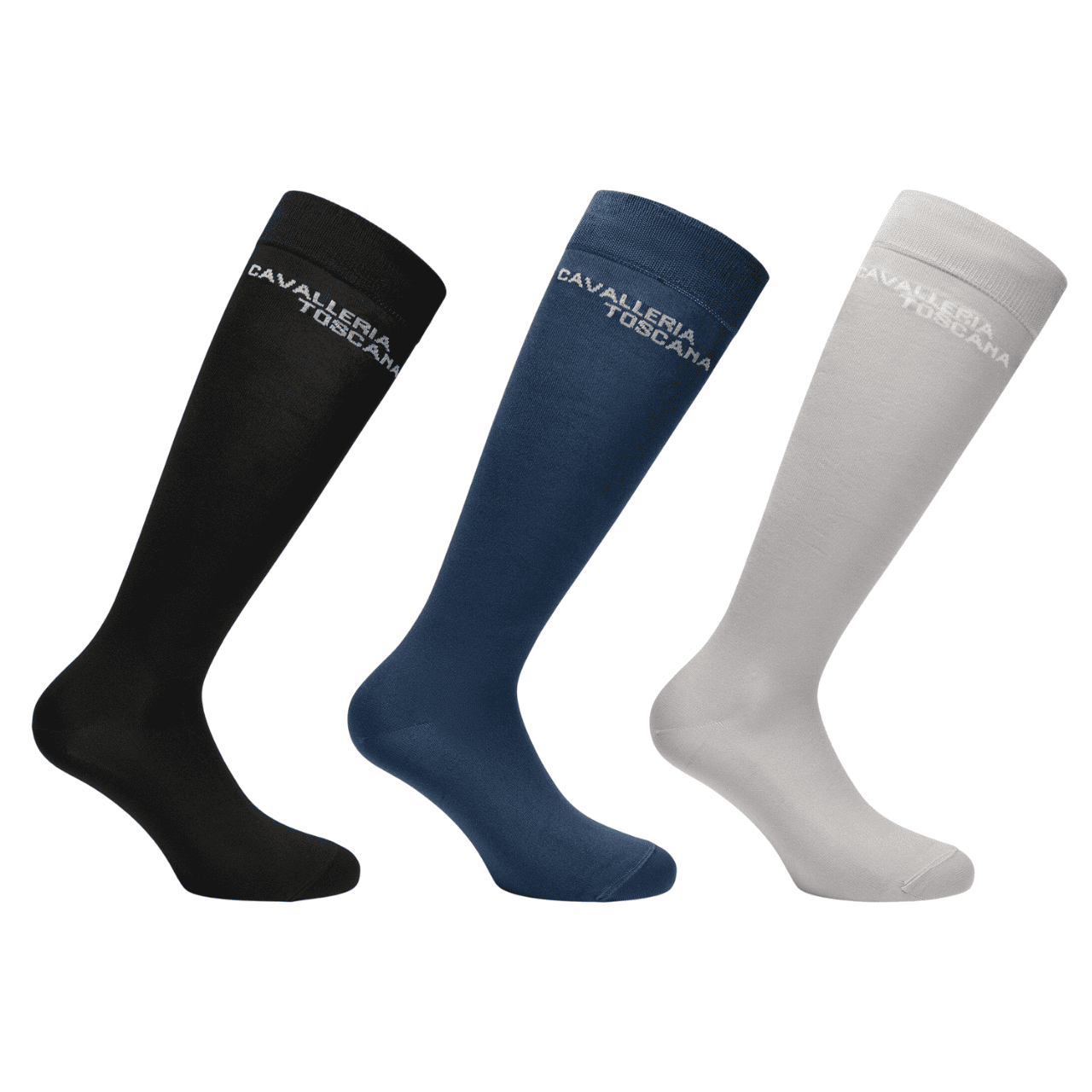 Set 3 calze Cavalleria Toscana realizzate in tessuto leggero e traspirante, garantiscono il massimo comfort durante l'attività sportiva o il tempo libero. Il set è composto da 3 paia di calzini in colori differenti con la scritta 'Cavalleria Toscana' all'altezza del polpaccio.