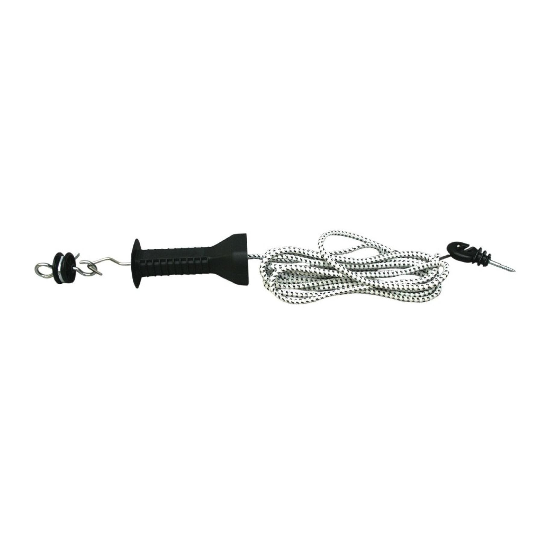 Questo kit consente di creare un'apertura nella recinzione elettrica per facilitare il passaggio degli animali. Consiste in un collegamento della maniglia del cancello con una prolunga conduttiva che consente il passaggio della corrente quando il circuito è chiuso.