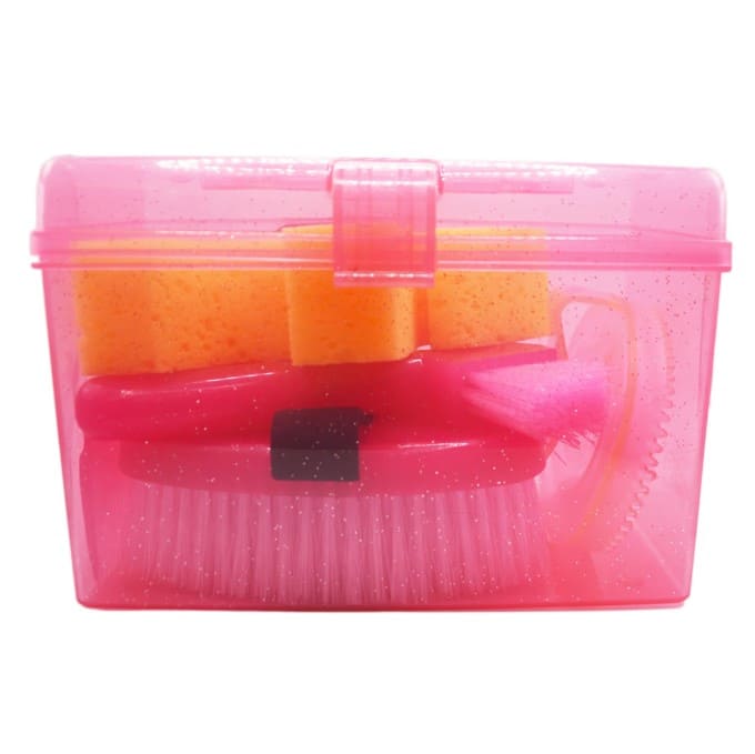 Piccolo bauletto glitterato contenente tutti gli accessori necessari per il grooming del cavallo.