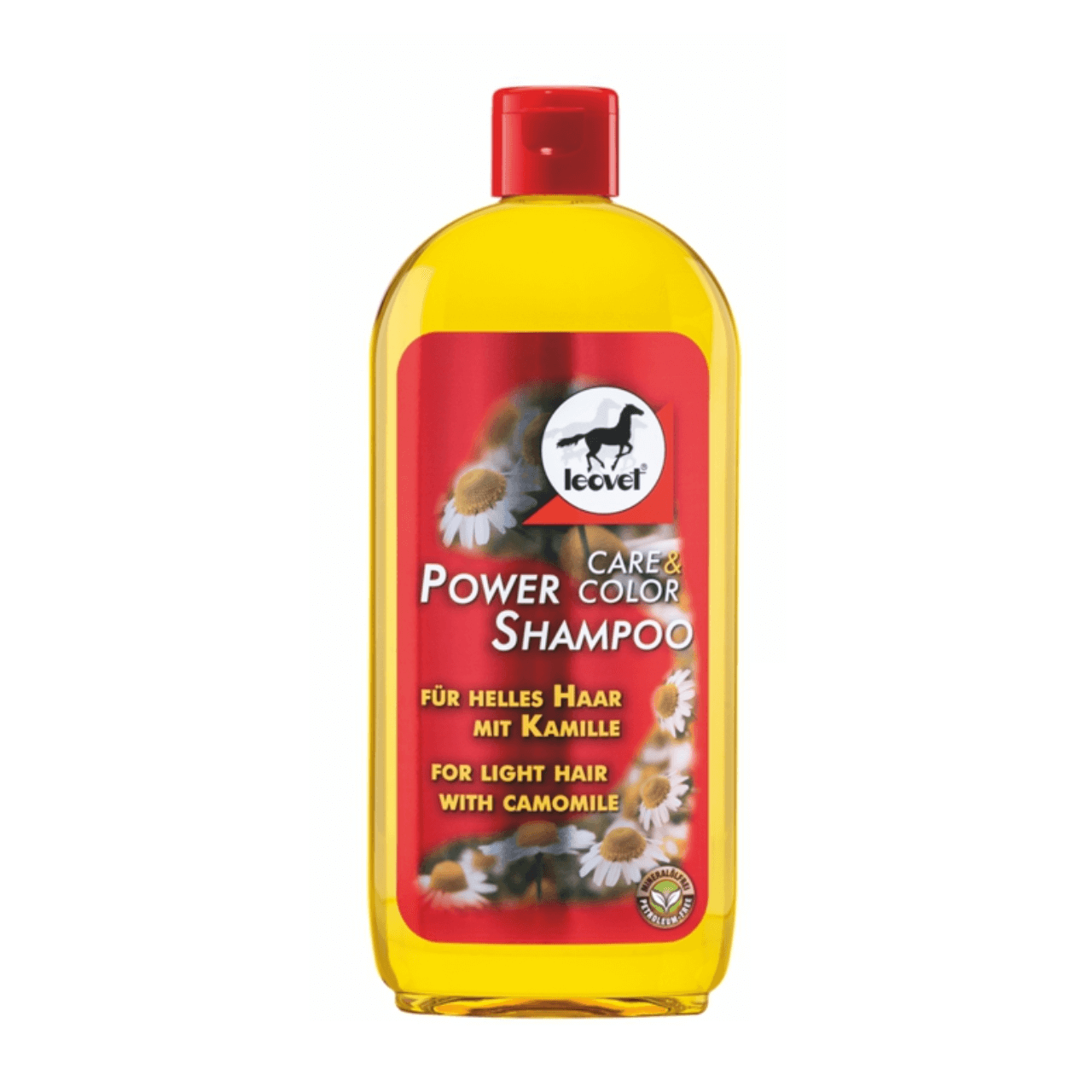 Power shampoo Leovet con Camomilla Romana per cavalli dal manto chiaro che pulisce, ammorbidisce e rende voluminoso il pelo e dona splendidi riflessi.
