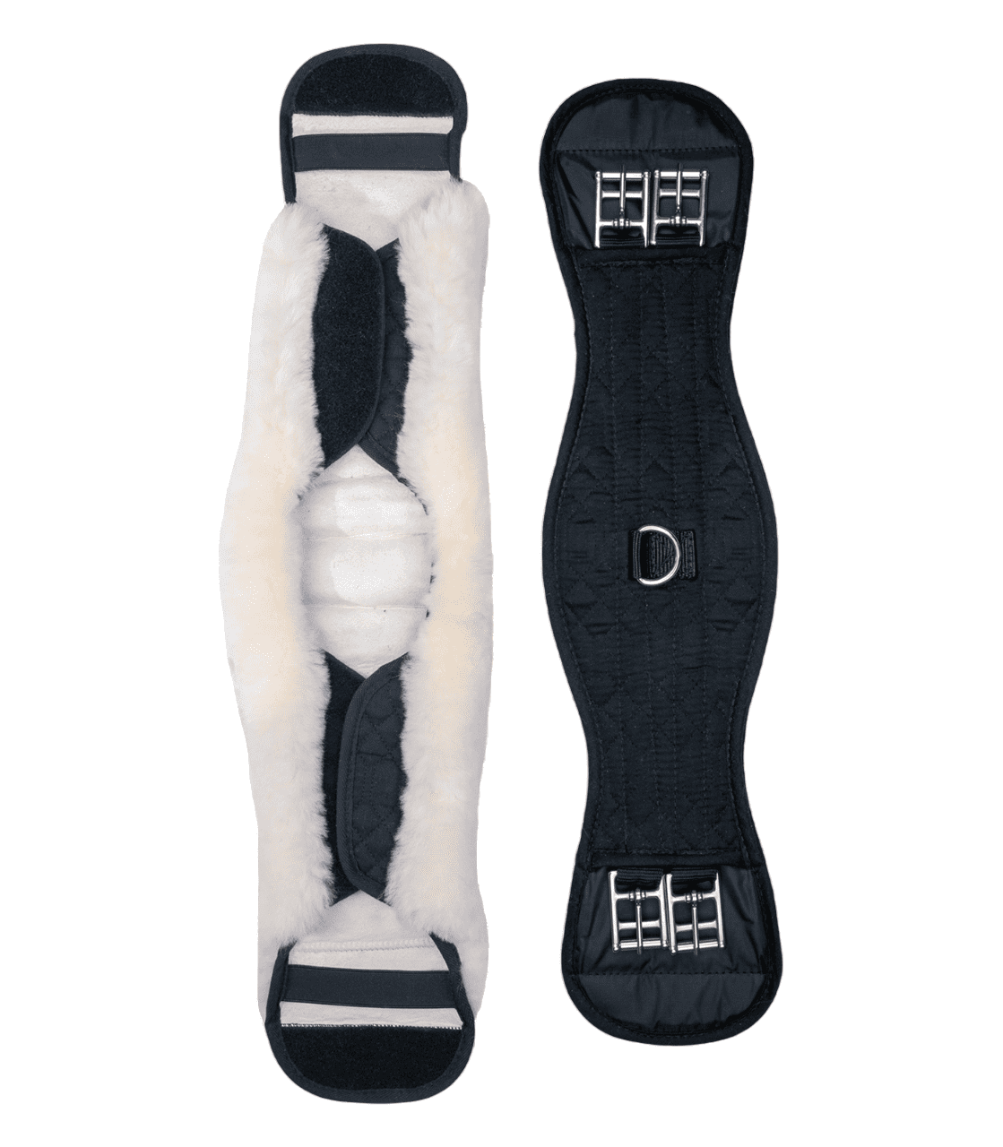 Pregiato fascione anatomico in vero agnellino per una protezione ottimale da punti di abrasione e pressione. Il rivestimento in agnellino può essere rimosso facilmente grazie alle chiusure a strappo e lavato. Con un anello a D e fibbie a rullo in acciaio inox, senza elastico.