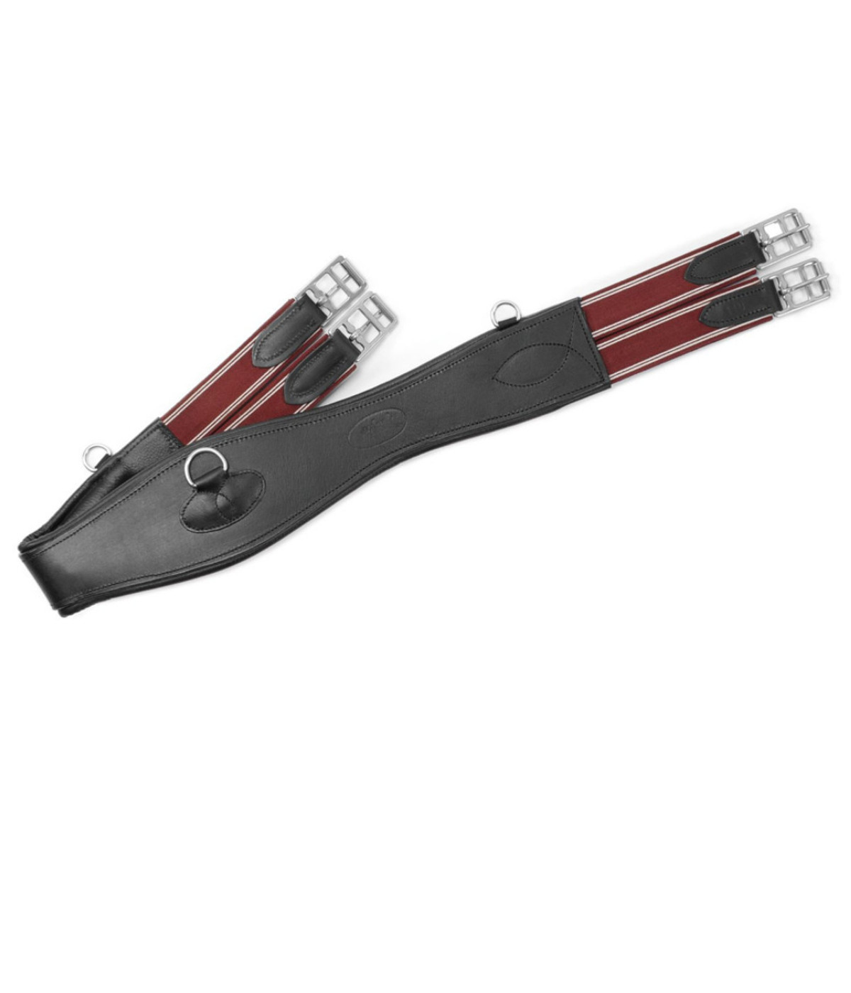 Sottopancia inglese in cuoio sagomato con doppi elastici e fibbie inox.