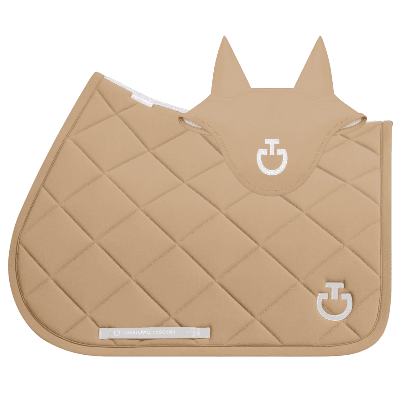 Set composto da sottosella e cuffietta di Cavalleria Toscana con trapuntatura a rombi.