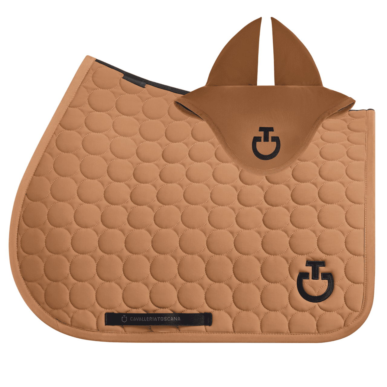 La struttura 3D in cotone a nido d'ape aderisce alla schiena del cavallo, pur mantenendo un'elevata traspirabilità. Rifinito con un bordo a contrasto e un logo Cavalleria Toscana ricamato in rilievo, aggiunge un tocco di eleganza e stile.