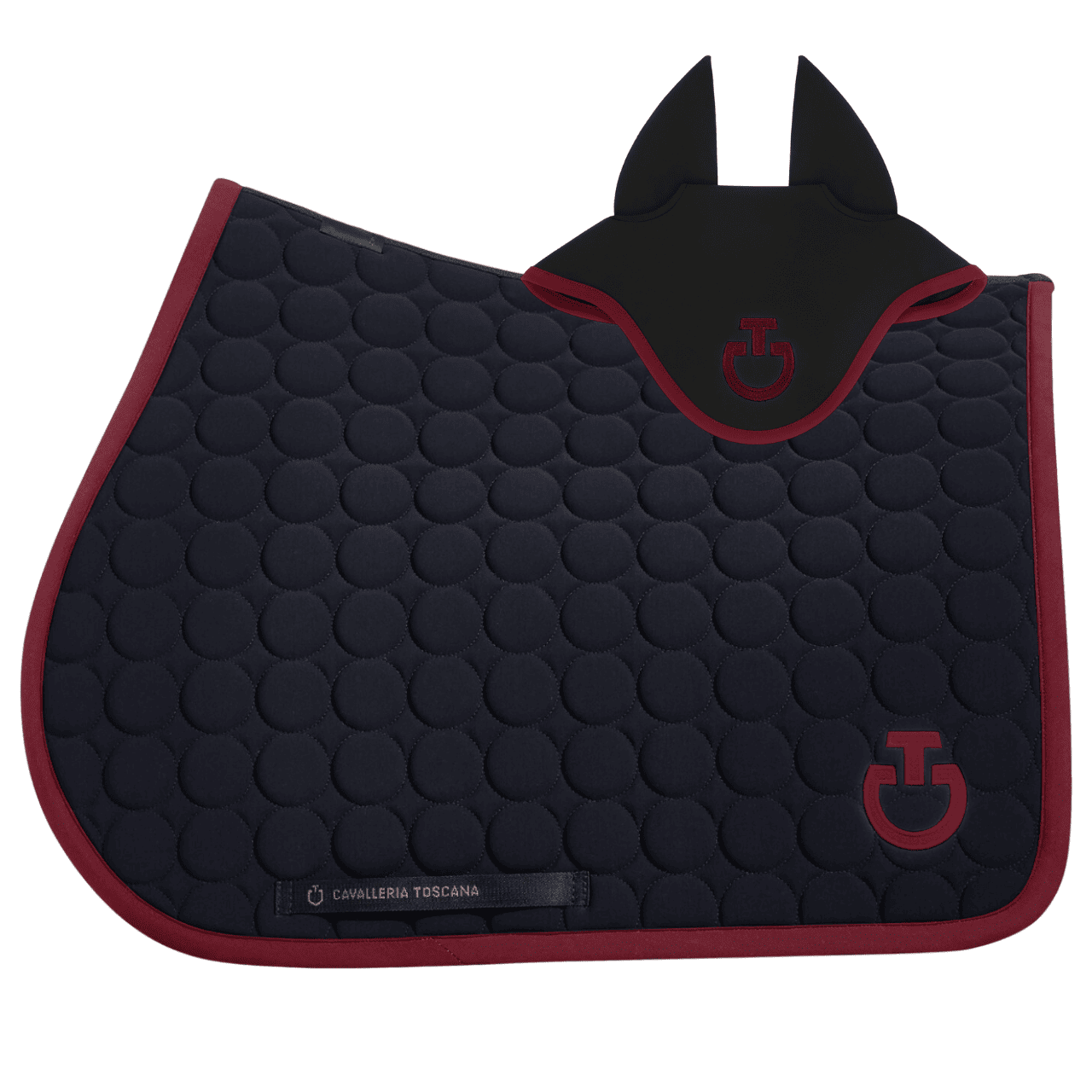 Completo da salto Cavalleria Toscana con sottosella in jersey e cotone 3D a nido d'ape con bordo a contrasto e ricamo in rilievo.