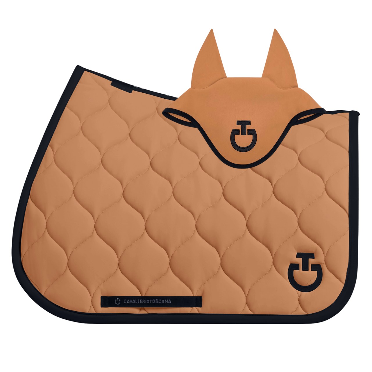 Set composto da sottosella da salto realizzato in jersey tecnico e cuffietta abbinata.