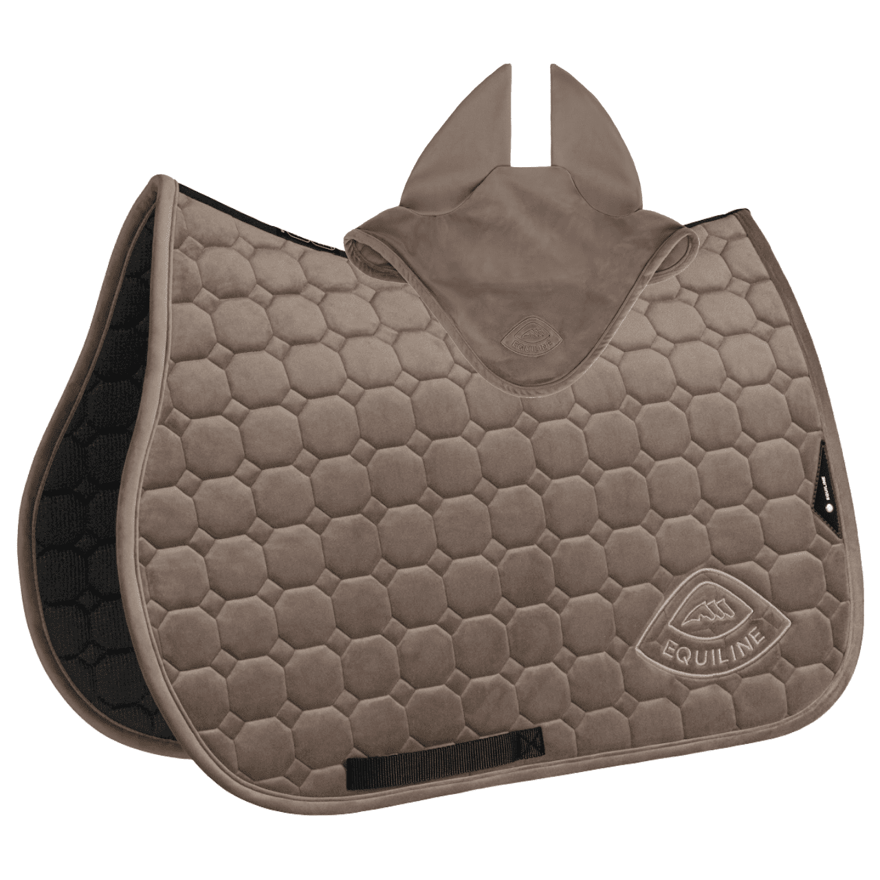 Set composto da sottosella da salto Equiline con una trapunta in morbido velluto e cuffietta abbinata.
