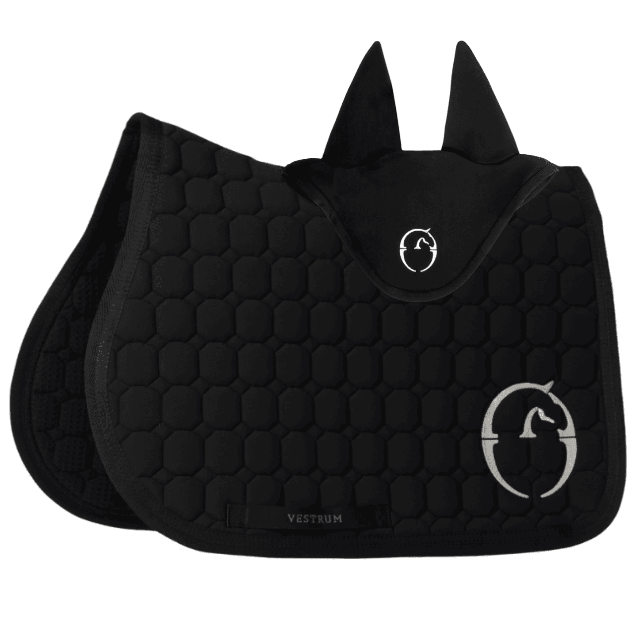 Sottosella da salto Vestrum realizzato in tessuto bielastico traspirante e imbottito ad alta tecnologia con bordi tono su tono o a contrasto. L'interno è in 100% cotone con texture spugna per una presa delicata sulla schiena del cavallo. Etichetta con scritta Vestrum su entrambi i lati e logo cucito su un lato in poliestere lucido.