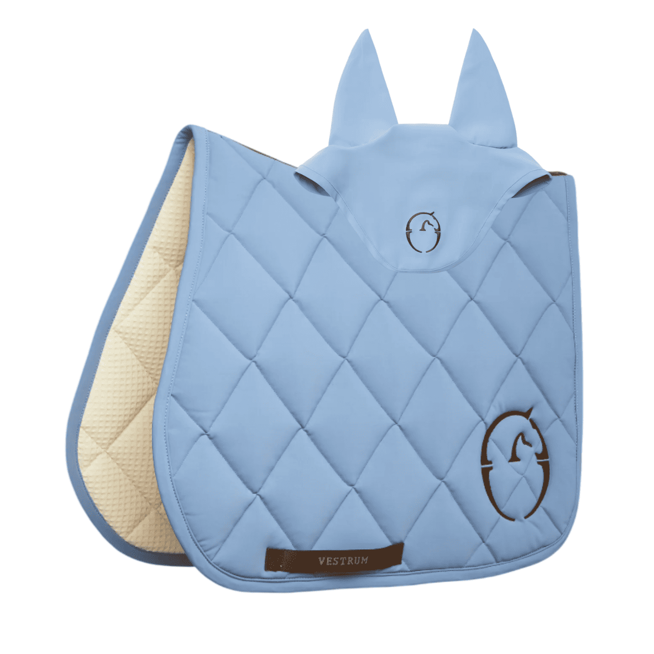 L'interno è in 100% cotone con struttura a spugna per garantire una presa delicata sulla schiena del cavallo. Imbottito e traspirante, il sottosella presenta il logo Vestrum ricamato a contrasto in basso a destra.
